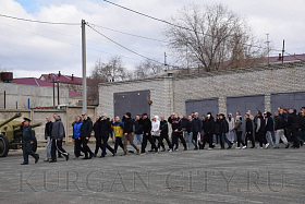 Также юношей приветствовал военный комиссар города Кургана Рустам Гайфутдинов. «Выполнение воинского долга - это почётная обязанность каждого гражданина Российской Федерации. В Вооружённых силах вы познакомитесь с новыми друзьями, у вас появятся товарищи, с которыми вы будете служить целый год. Желаю вам мужества, стойкости, решительности. Вернуться домой окрепшими. И помните, вас дома ждут близкие и родные», - сказал Рустам Рафисович.