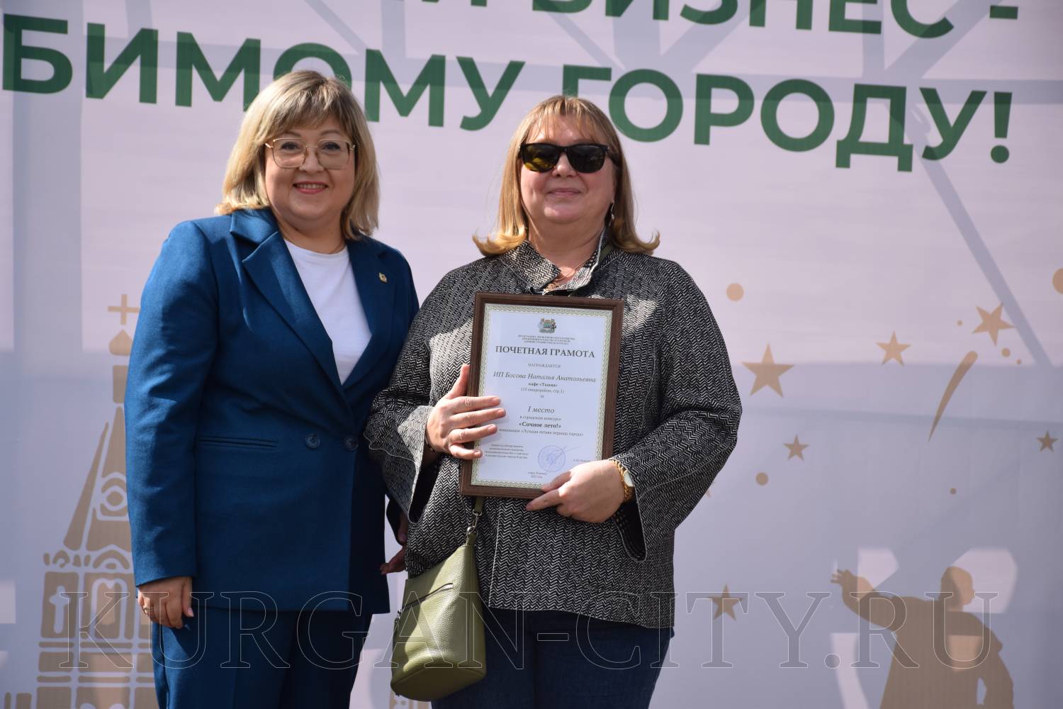 Анна Михайловна отметила, что в этом году Курган отмечает День города в особенных условиях. «Нашему любимому городу Указом Президента страны присвоено почётное звание «Город трудовой доблести». За 346 лет Курган из уездного городка превратился в динамично развивающийся областной центр. И одним из факторов развития стал наш бизнес. Это предприятия, предприниматели и самозанятые граждане. Сегодня на площадках они покажут свою продукцию, те услуги, которые оказывают населению», - обратилась к участникам выставки-продажи Анна Бунина. Она пожелала городу дальнейшего развития, новых производств, инвестиционных проектов, а курганцам – счастья, здоровья и мирного неба над головой.