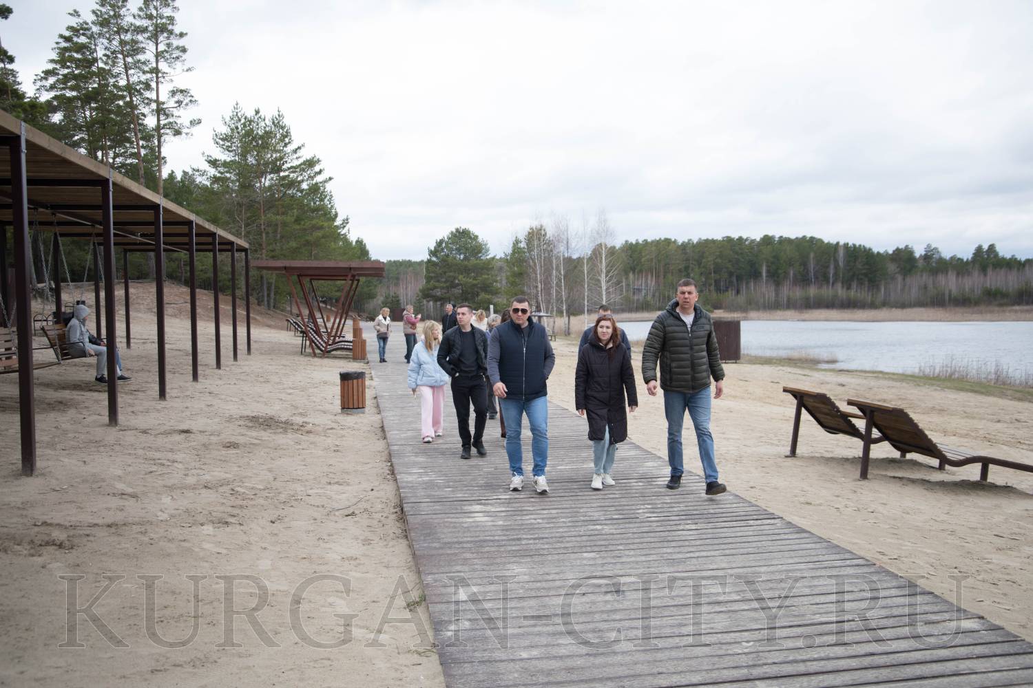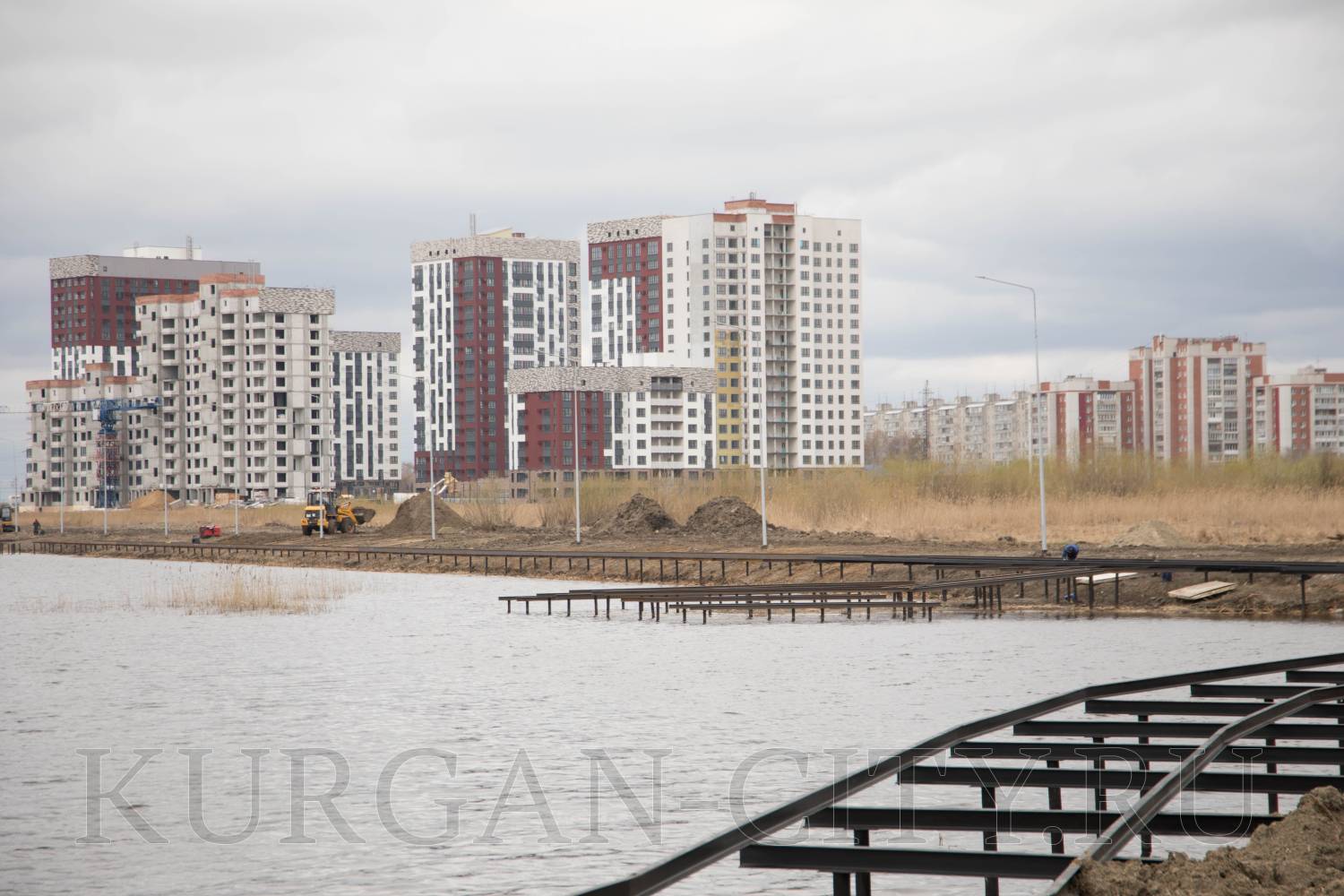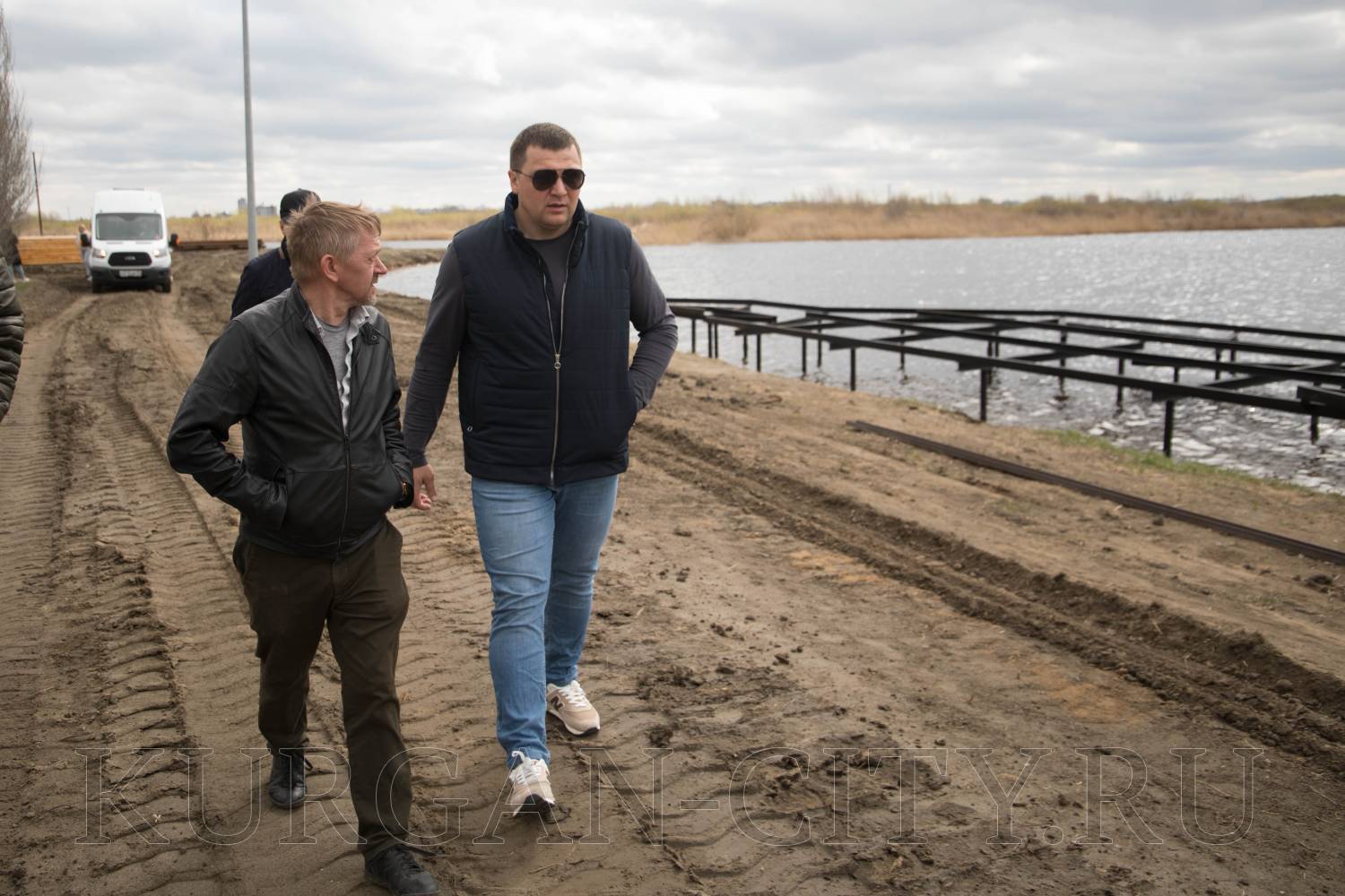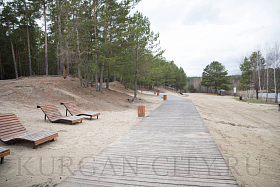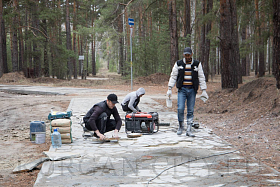 Из объектов благоустройства были проверены работы на озере Черное в Заозерном микрорайоне. В настоящий момент подрядчик устанавливает вдоль береговой линии металлическую обрешетку, на которую в последующем будет укладываться деревянный настил.