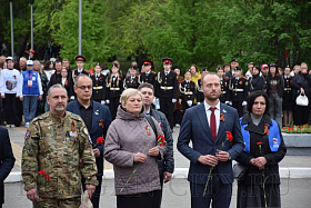 В памятном мероприятии приняли участие временно исполняющий полномочия главы города Кургана Антон Науменко, председатель Курганской городской думы Игорь Прозоров, депутаты, школьники, представители ветеранских организаций.