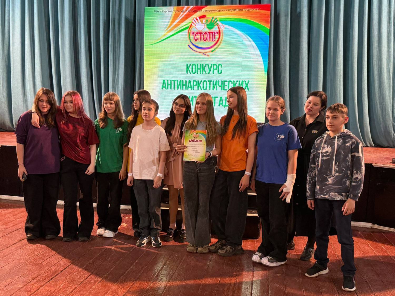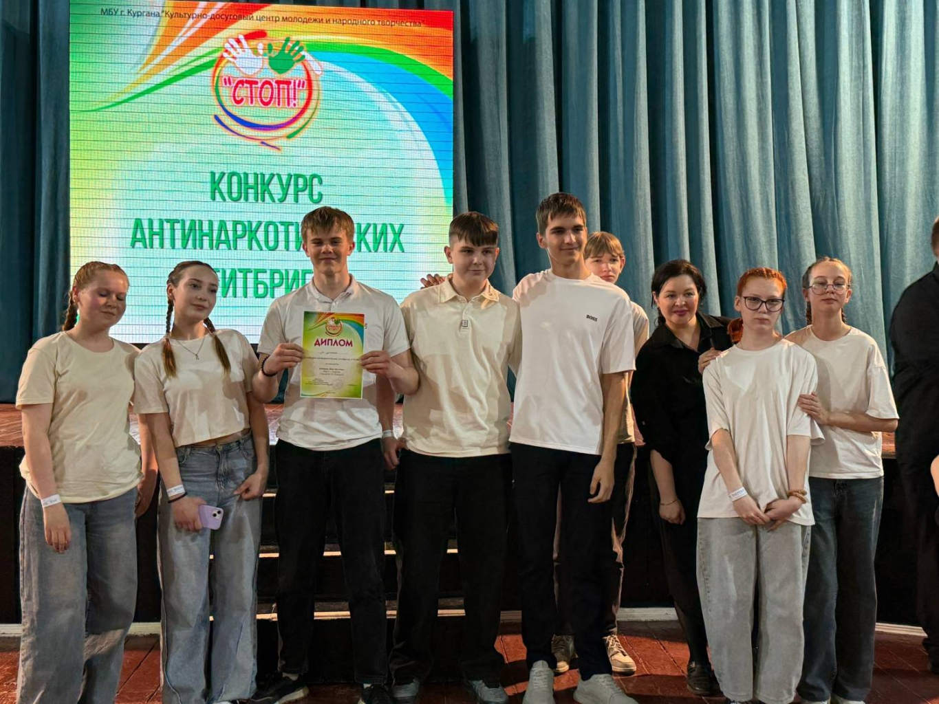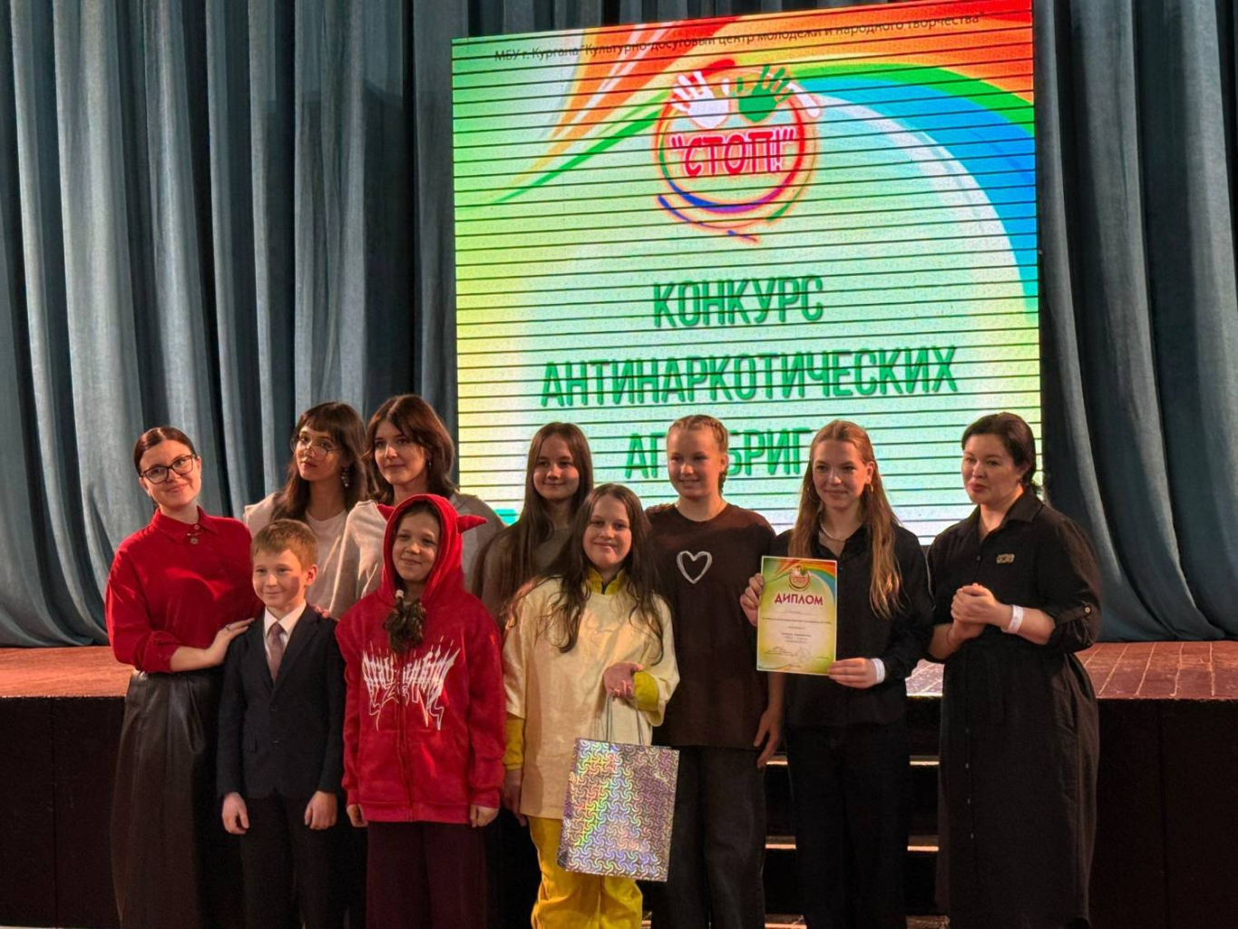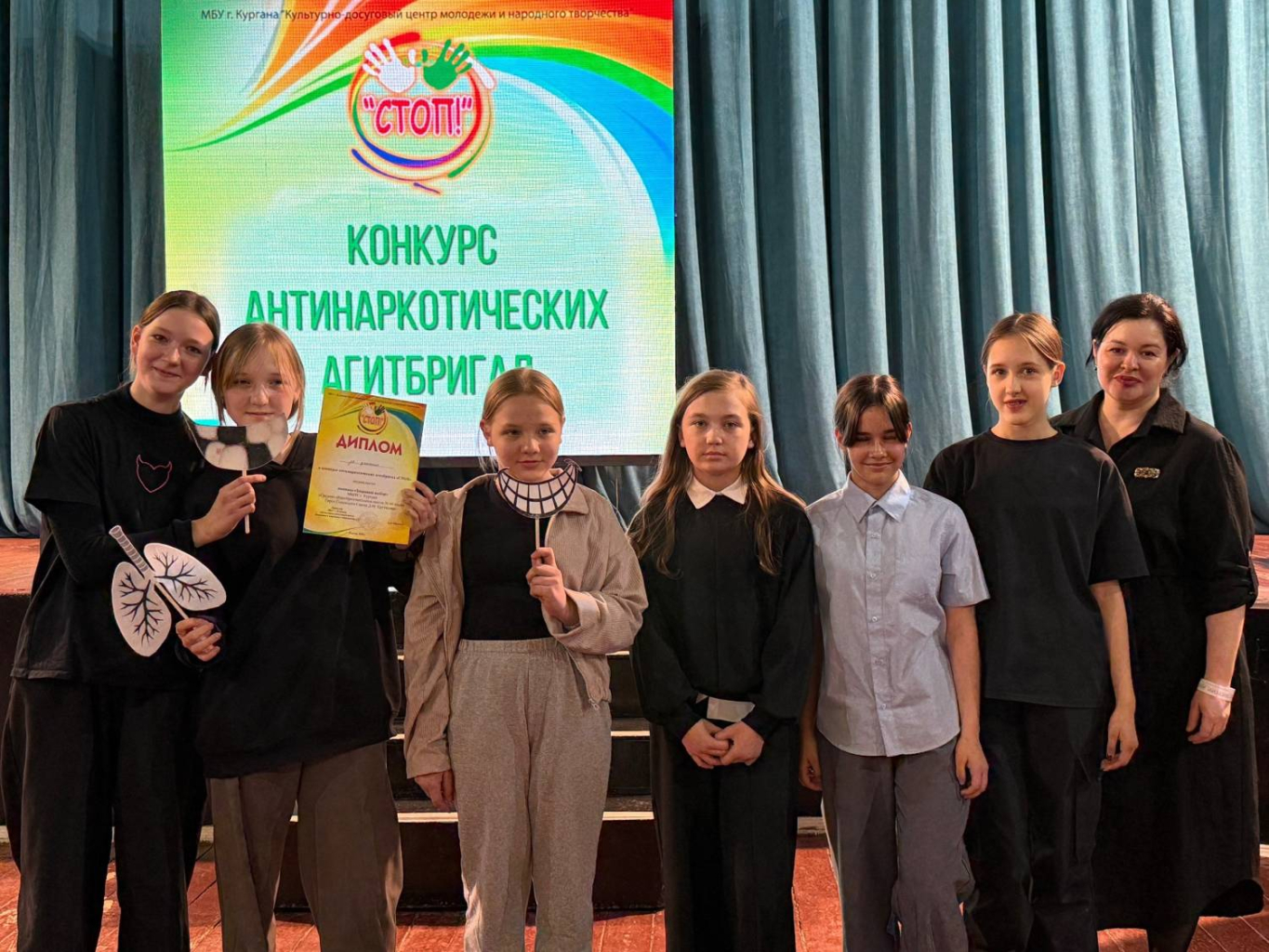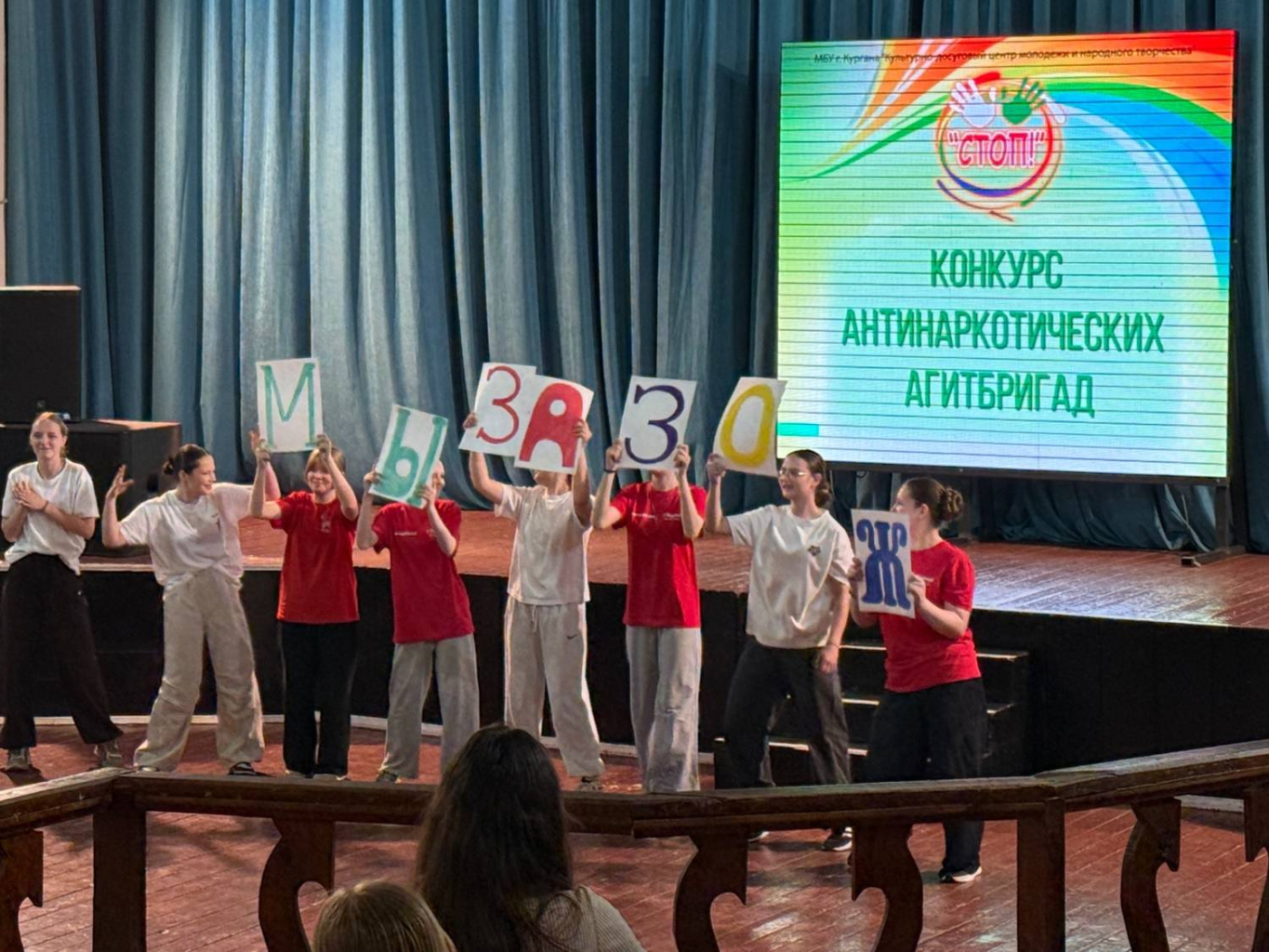 В Кургане на базе Центра культуры и досуга «Спутник» состоялся ежегодный конкурс антинаркотических агитбригад «СТОП!». Его организаторами стал Культурно-досуговый центр молодёжи и народного творчества. В этом году участниками конкурса «СТОП!» стали 17 команд из образовательных учреждений города Кургана.