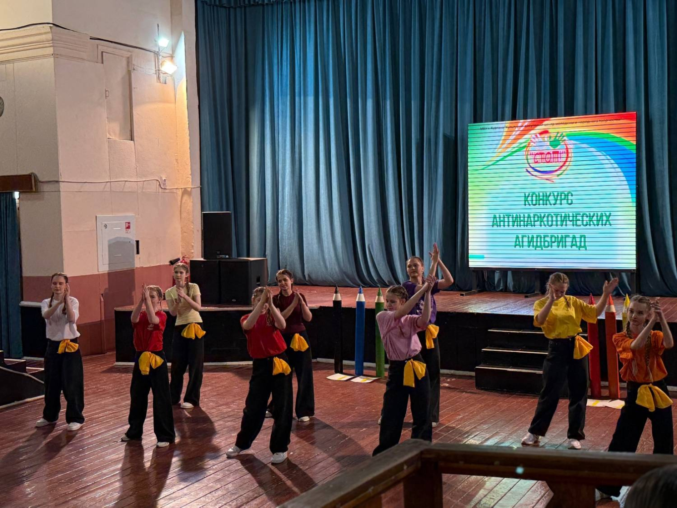 Перед началом конкурсной программы зрителей порадовал яркий хореографический номер коллектива «Стремительные улитки» Центра современного танца «Парадокс». Команды представили агитвыступления, направленные на профилактику наркотической зависимости и других вредных привычек. Через сценические образы, эмоциональные постановки и творческий подход ребята донесли до зрителей важные идеи ценности здорового образа жизни и ответственности за своё будущее. Выступления команд отличались креативностью, искренностью и глубиной раскрытия темы. Ребята представили собственное видение проблемы пагубных зависимостей, используя различные формы сценического искусства.