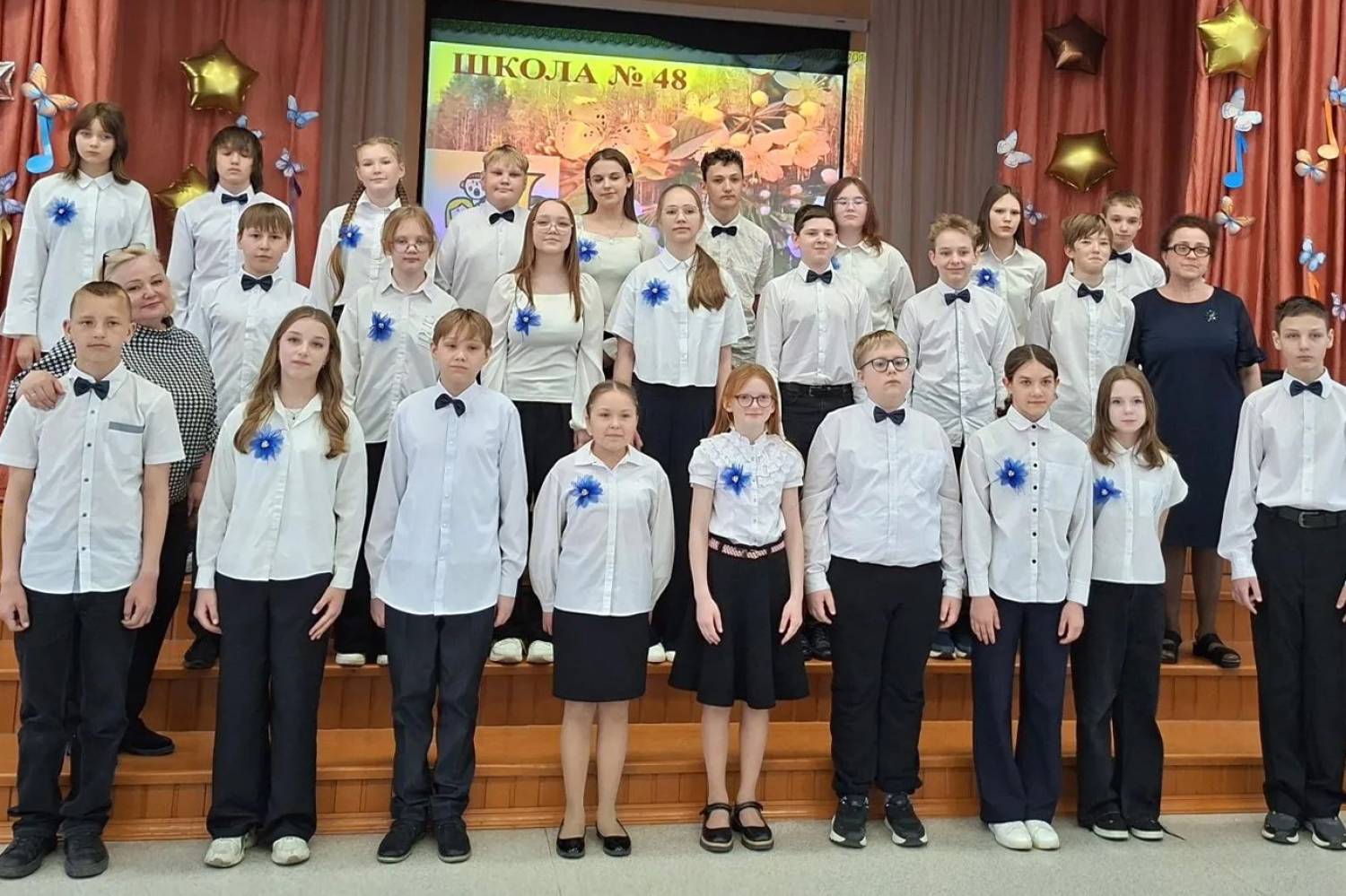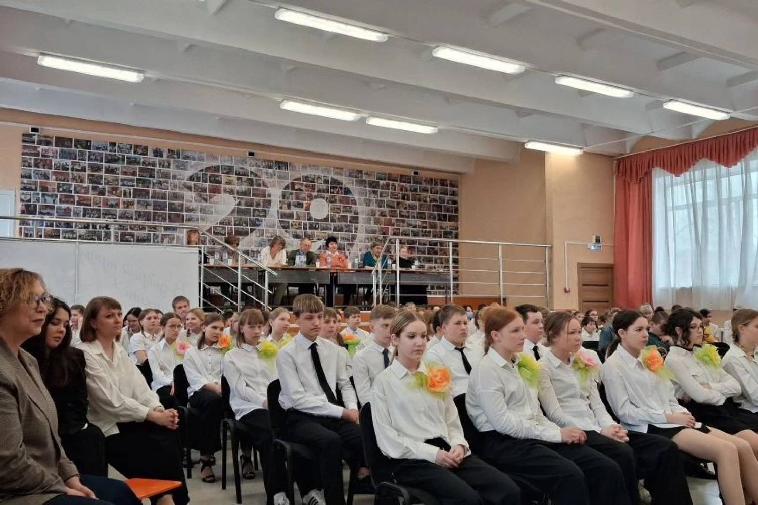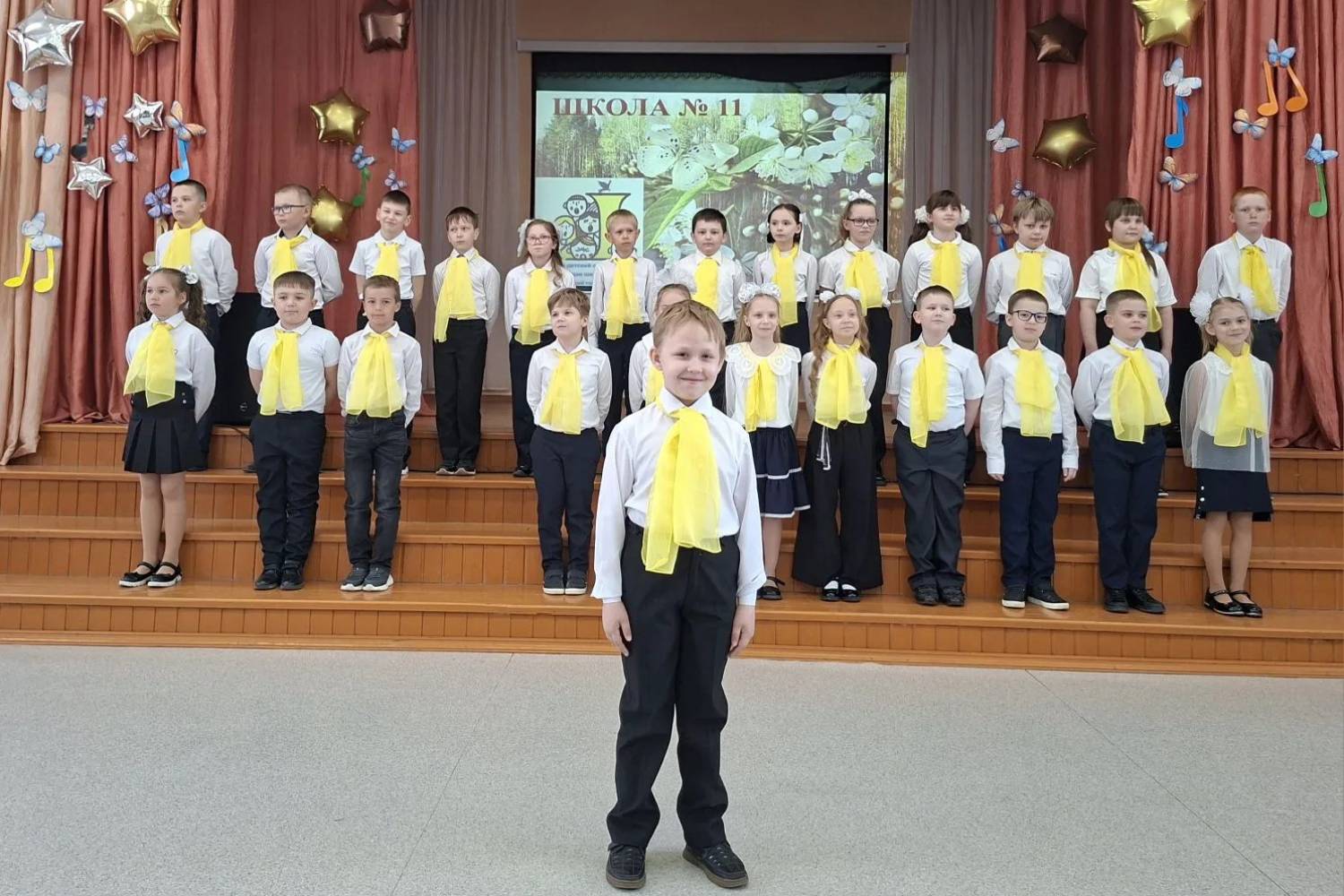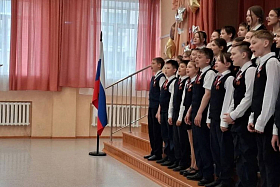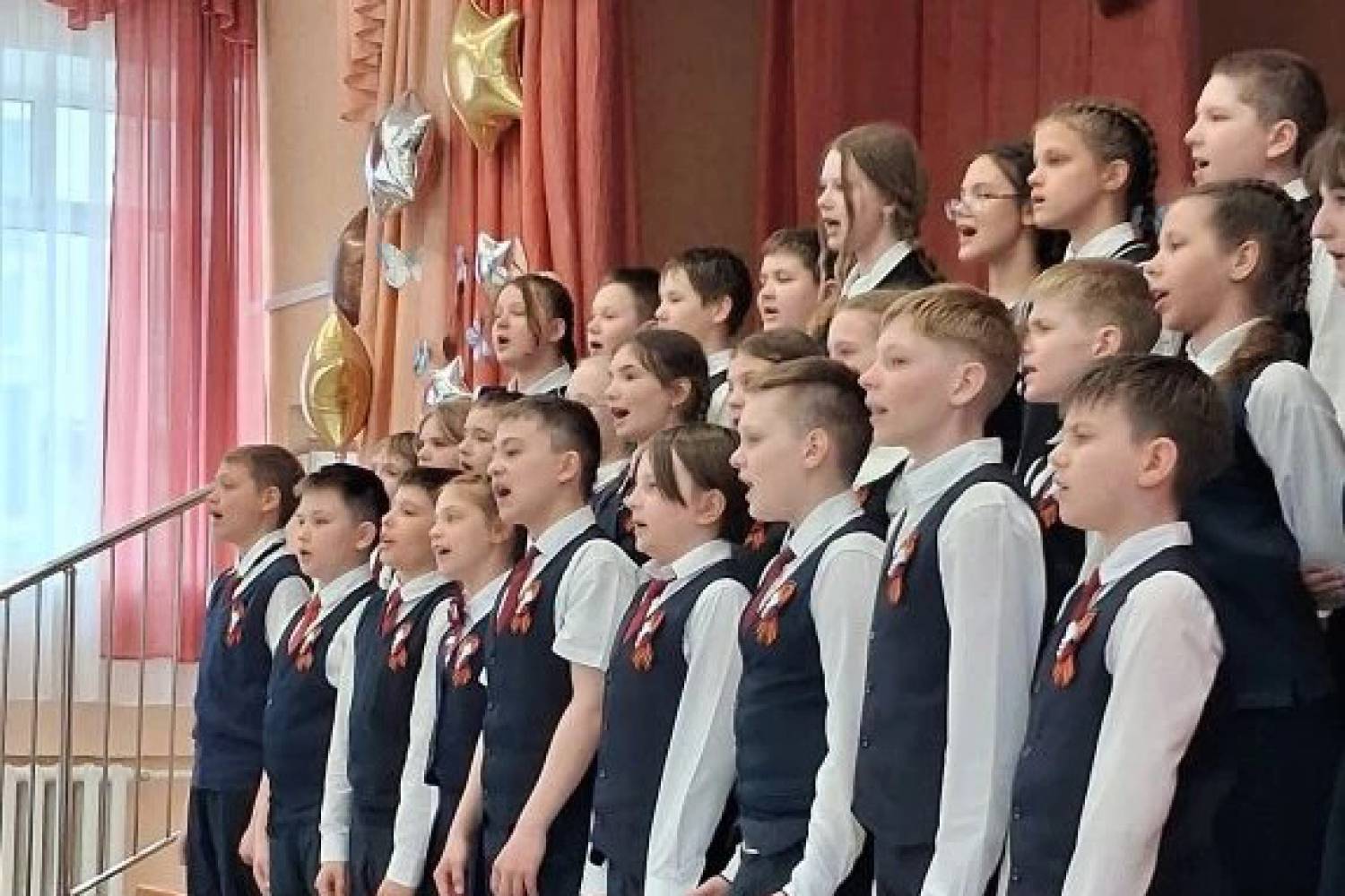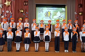 Накануне 9 мая с особым чувством были исполнены песни «На безымянной высоте», «От героев былых времен», «Песня о маленьком трубаче», «Журавли», одинаково трогательные в исполнении юных первоклассников и статных юношей-подростков.