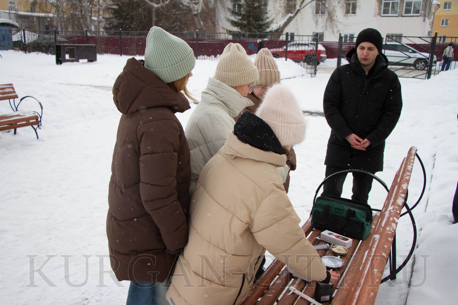 Зимой школьники работы на площадке используют переносное оборудование для измерения метеорологических показателей: барометр, анемометр, гигрометр и другие. Затем эти данные применяют для написания проектов.