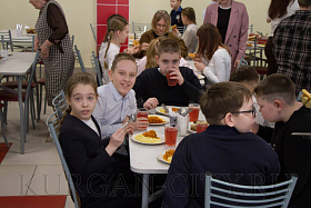 Каждый день в столовой гимназии № 31 питается порядка 800 детей. В прошлом году обеденный зал был отремонтирован. «Здесь заменено всё: и стены, и пол, и потолок, закуплена новая мебель, столы со стульями. В столовой красиво и детям удобно и комфортно здесь находиться и питаться», - резюмировала Наталья Герус.