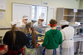 Хозяйка здесь – Ольга Кузьмина, заведующая производством школьной столовой. «Меню у нас сбалансированное, полезное для детей, для их здоровья. Всё сделано так, чтобы дети питались качественной здоровой пищей. После Нового года у нас немного поменялось меню. Добавились сырнички, оладушки с яблоком, есть сэндвичи со сгущённым молоком», - рассказала Ольга Анатольевна.