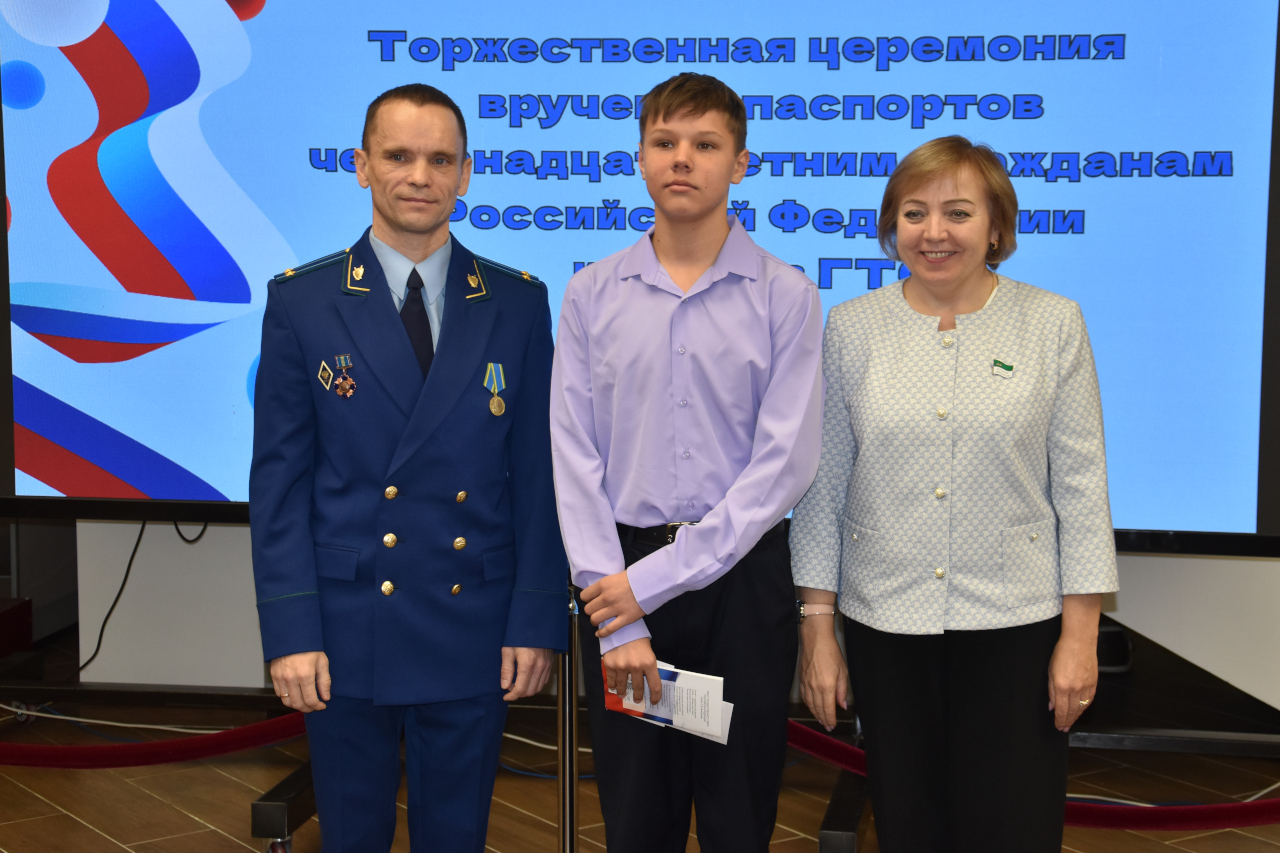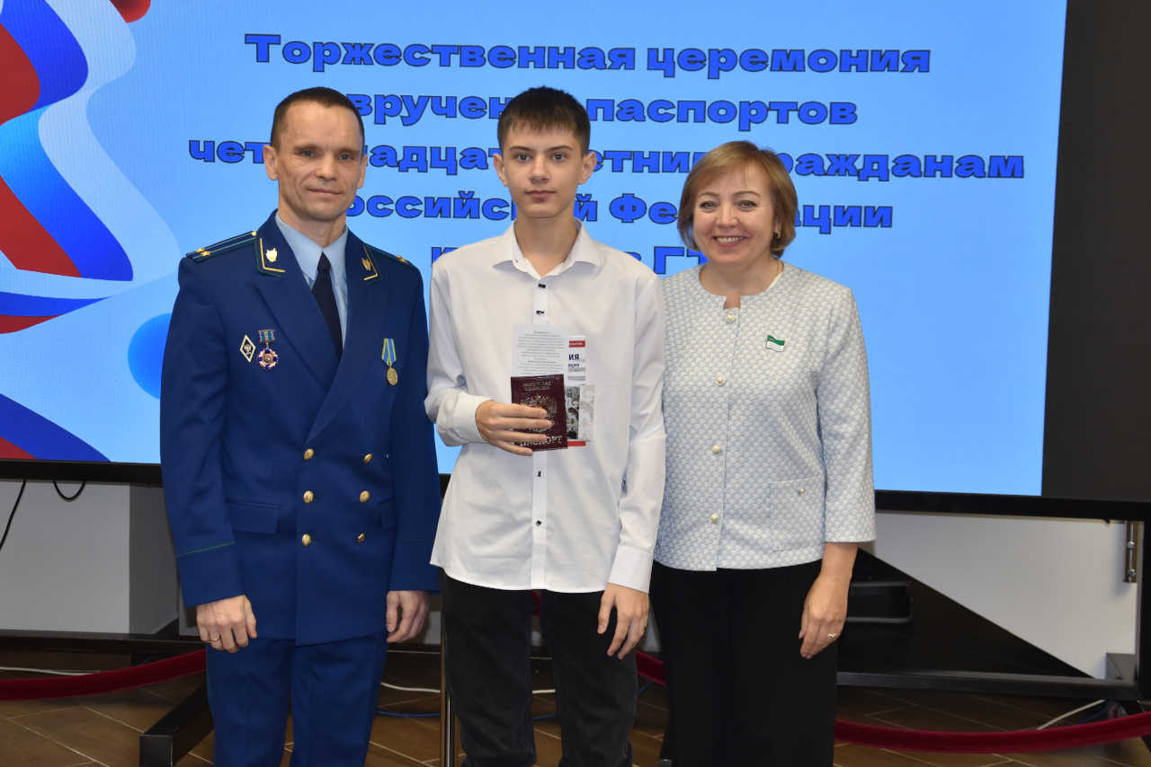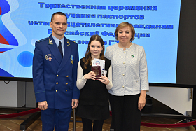 Напомним, что церемонии вручения паспортов проходят в рамках всероссийской акции «Мы – граждане России!» и связаны с важными в истории страны событиями. На этот раз церемония была посвящена Дню принятия Конституции Российской Федерации, который ежегодно отмечается 12 декабря. Ребятам напомнили о фундаментальном документе государства, который защищает наши права и устанавливает правила жизни общества. И вместе с паспортом они получили из рук первого заместителя прокурора города Кургана Сергея Снежкова текст российской Конституции.
